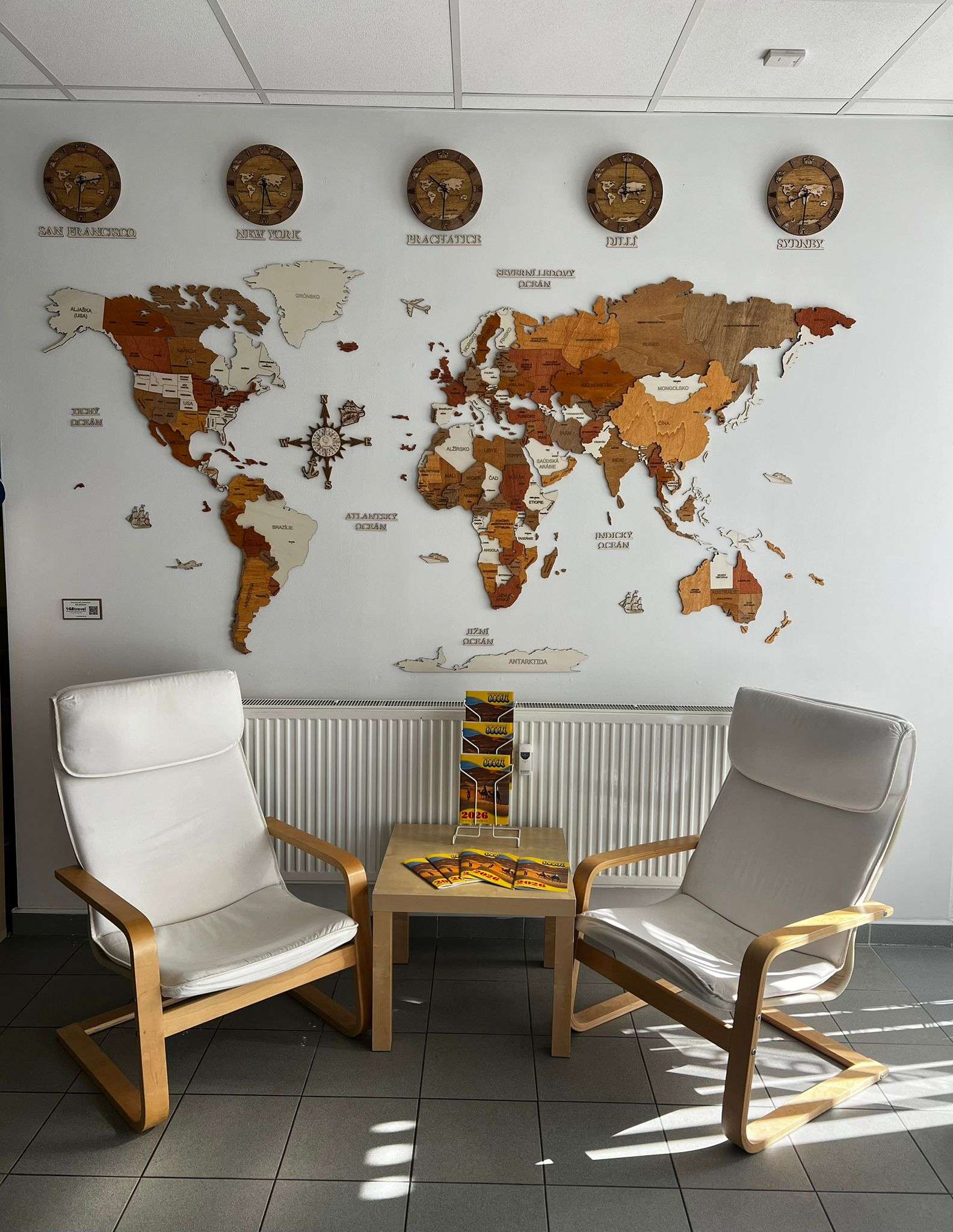 Czeska agencja turystyczna Ocean ma już prawie 20 lat szeroką ofertę wycieczek naprawdę dla każdego. Teraz oprócz wspaniałych usług przy zakupie wakacji możecie w CK Ocean doświadczyć także naszej drewnianej mapy świata w rozmiarze XXL w pełnym wyposażeniu. Czas w 5 światowych miastach pokażą Wam drewniane zegary z naszej pracowni.
